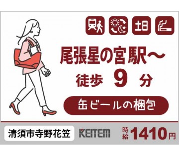 【20代,30代活躍中】女性スタッフ多数活躍 【缶ビールの梱包】 20~50代半ば活躍中/尾張星の宮駅から徒歩9分/6缶パックを作るシンプル作業/時給1410円/月収25.7万円