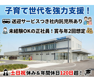 【20代,30代活躍中】【急募】≪未経験歓迎×完全土日祝休み≫年間休日120日超の正社員【製造スタッフ】送迎つき社内託児所あり 【子育て世代活躍中】