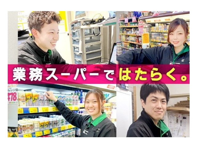 食を通じて社会に貢献する大切なお仕事!地域の方に愛されるお店作りに挑戦してみませんか?■業務スーパー事業部とは…?私たちは「エブリデイロープライス」をコンセプトに、食品スーパーの運営をはじめ、日配弁当の製造・販売、食堂運営の受託、惣菜づくりや夕食材料セットの宅配、旅館・外食事業など、幅広く“食”に関わる事業を展開しています。神戸物産グループの強みを活かしたオリジナル商品や世界各国の輸入品を、お求めやすい価格でご提供。多彩な品揃えときめ細やかなサービスで、お客様に喜ばれながら、さらなる成長を目指しています。