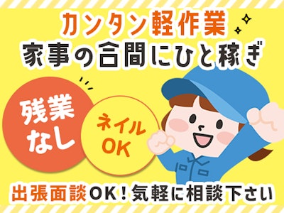 「あなたに近い派遣会社」株式会社ホットスタッフです!!超カンタンWEB登録♪・カンタン軽作業・オフィスワーク・製造作業なら当社にお任せください♪☆★お仕事開始までのイメージ☆★(1) 応募/WEB登録┗受付完了後、 担当者よりご連絡いたします!(2) 登録・面談┗希望の条件などを 確認し、あなたにぴったりの お仕事をご紹介します♪◆私服、子ども連れOK◆面談場所はホットスタッフもしくは 都合の良い場所で出張面談が可能です。(3) 職場見学┗見学時、 雰囲気や環境、仕事内容が 合わないと思ったら断ってOK! 不安なことがあれば気軽に 担当者にお伝えくださいね♪(4) 雇用の手続き┗書類の記入などを していただき雇用契約を結びます!(5) お仕事スタート♪安心してご就業がスタートできるよう全力でサポートさせていただきます!!!皆様からのご応募お待ちしております★***