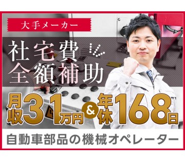 <苫小牧市>【年休168日】月収31万円可◎大手メーカーで自動車部品の機械オペレーター★未経験OK♪【履歴書不要☆オンライン面接OK】【入社キャンペーン実施中!】