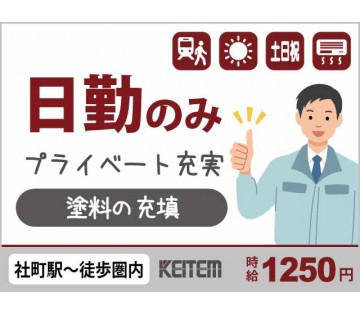 【塗料充填】20~50代半ばが活躍中/日勤&土日祝休みのシンプルワーク/未経験OK/研修あり/缶をセットして蓋をする作業/月収19.6万円