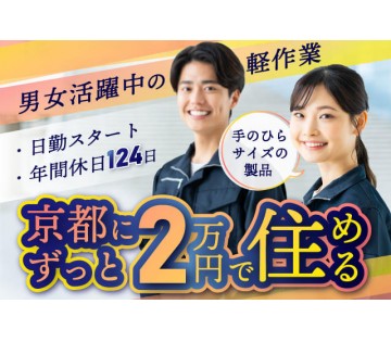 【京都駅まで電車で約5分の寮】寮費ずっと2万円◎軽作業◎日勤スタート◎土日祝休み◎手のひらサイズ◎電子部品を取り付け!男性・女性活躍中!