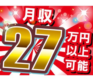 (1)月給27万円~30万円+インセンティブ※試用期間有、1~3ヶ月(期間中は能力に応じて変動有)<入社1年、月収例>27万円+平均インセンティブ17万円入社1年目で年収550万円以上も可能