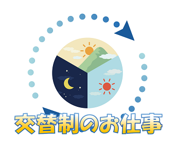 勤務時間(1)と(2)または(3)の1週間毎の交替勤務、あるいは4勤2休(4日日勤、2日休み、4日夜勤、2日休みの繰り返し)となります。