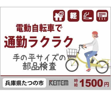 【20代,30代活躍中】【軽い車部品投入・検査】20~50代半ばが活躍中/高時給1500円×人気の関西で寮費無料/電動自転車無料貸し出し/3日毎に休日/日払いOK/月収27.2万円
