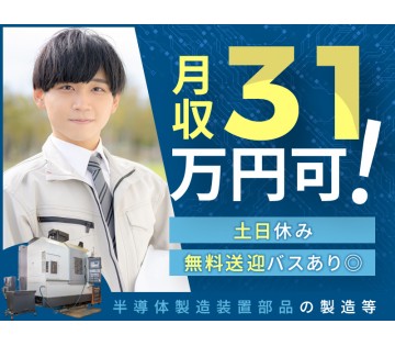 20~40代活躍中★ 【月収31万円可!】土日休み☆半導体製造装置部品の製造や検査など♪無料送迎バスあり◎