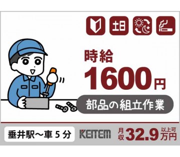 【20代,30代活躍中】【建築機械の部品組立】未経験から高時給1600円のコツコツ作業/土日休み/朝までの夜勤なし/残業多めで稼げる/月収32.9万円