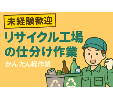 【20代,30代活躍中】\未経験歓迎!社会に役立つ仕事◎/ リサイクル工場での缶・ビン・ペットボトルの仕分け作業スタッフ募集!