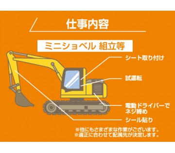 キャリアアップを目指したい方にオススメ☆/月収例31.6万円/入社特典について【ミニショベルの組立のお仕事】(No.OS-11324-01-JP)