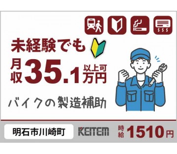 世界的メーカー 【バイクエンジン製造】 20~40代活躍中/時給1510円の組立作業/林崎松江海岸駅から徒歩5分/土日休みの男女活躍/月収35.1万円以上可