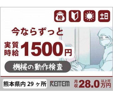 日払いOK 【機械のチェック】 20~40代活躍中/実質時給1500円/土日休みの日勤シフト/パソコンや機械を使用/月収28万円以上可
