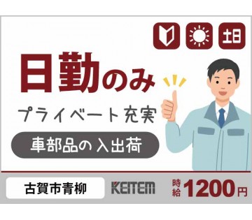 【車部品入出荷】20~50代半ばが活躍中/日勤シフトだけのカンタン作業/経験不問/長期休暇年3回/日払い可/月収24.5万円