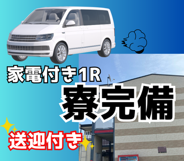・家具家電付き1R寮完備/赴任旅費会社負担