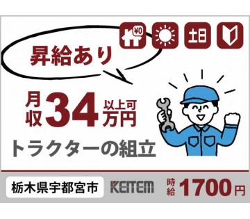 トラクターの組立/寮費無料&日勤専属/土日休み/月収34万円