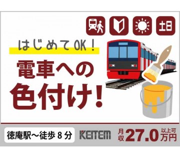【電車に色を塗るオシゴト】20~50代半ばが活躍中/鉄道ファン必見/時給1500円の電車の外観仕上げ/日勤シフト/土日休み/月収27万円