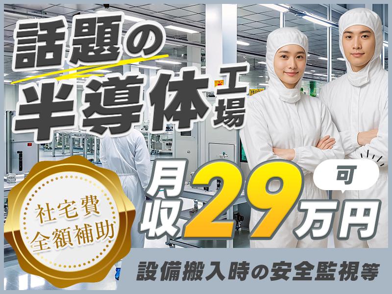 <千歳市>【社宅費全額補助】月収29万円可!話題の半導体工場♪設備搬入時の安全監視・用力接続立ち合い等◎賞与年2回♪【履歴書不要☆オンライン面接OK】【入社キャンペーン実施中!】