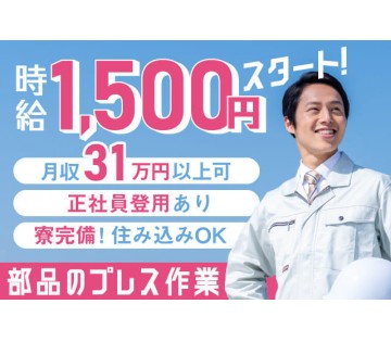 【正社員登用実績あり】工場未経験OK!月収31万円以上可◎時給1500円スタート◎部品プレスの工場内作業◎
