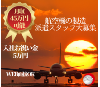 月収45万円可◎今だけの入社特典5万円!【航空機の主翼の組立・溶接】土日祝休み/未経験歓迎/経験者は時給UP!