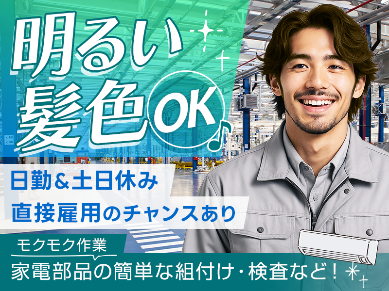 【20代,30代活躍中】日勤&土日休み♪家電部品の簡単な組付け・検査など!重量物基本なし☆20代~40代男女活躍中