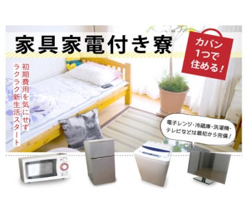 エアコン・テレビ・洗濯機・冷蔵庫・布団・コンロなどを無料でご用意しています!
