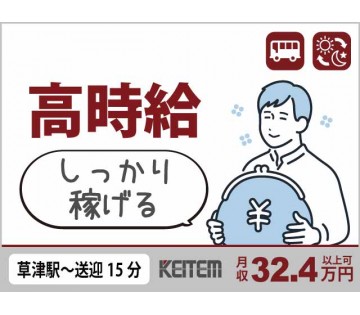 滋賀県湖南市最寄り駅:三雲駅アクセス:勤務詳細:湖南市通勤方法:徒歩/車/自転車/バイク最寄り駅:三雲駅から車5分