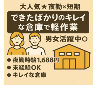 大人気★夜勤×短期【できたばかりのキレイな倉庫で軽作業】男女活躍中◎