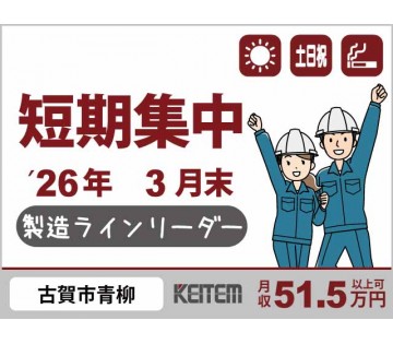 【20代,30代活躍中】製造ラインリーダー:5ヵ月間で250万円も夢じゃない/組立工程をまとめるリーダー/土日祝休み/年末年始休暇あり/月収51.5万円以上