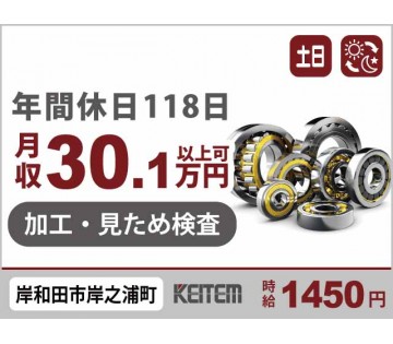 【20代,30代活躍中】日払い可 【金属部品の加工】 20~30代活躍中/年間休日118日でお休み充実/ベアリング部品の外観検査/長期休暇あり/月収30.1万円以上可