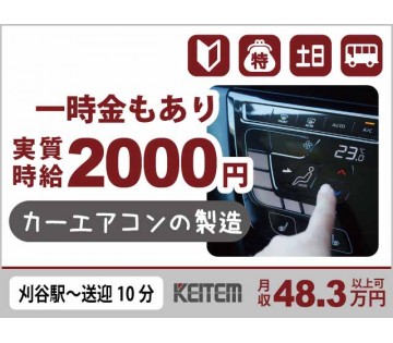 【20代,30代活躍中】未経験から実質時給2000円 【エアコンファンの組立】 20~30代活躍中/刈谷駅からの送迎あり/土日休みの重い物なし/工場見学実施中/月収48.3万円以上可