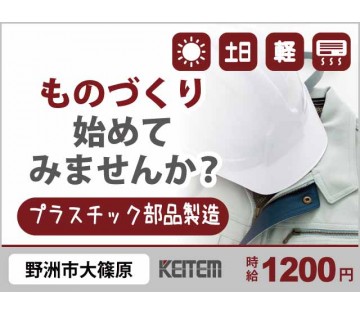 プラスチック部品製造:日勤/土日祝休み/長期休暇あり/座り作業の部署もあります/時給1200円
