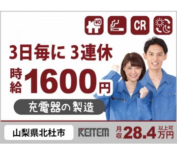 【少し大きめの充電器の製造】高時給1600円×寮費無料で新生活サポート/月の半分休み/残業基本0/空調完備/月収28.4万円