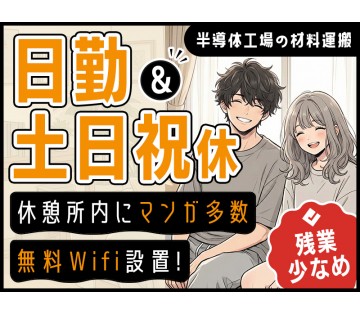 <浜松市中央区>【日勤&土日祝休み!】人気の半導体業界☆材料運搬♪残業少なめ♪無料Wifiやマンガ本あり◎【履歴書不要☆オンライン面接OK】【入社キャンペーン実施中!】