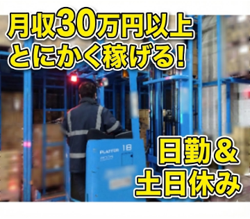 【20代,30代活躍中】【★高時給1,900円】「月収30万円以上可能でとにかく稼げる!」◎人気の日勤×土日祝休み【大手倉庫でフォークリフト入出庫作業/手元作業少なめ】◎安全講習あり/におい&汚れ無し