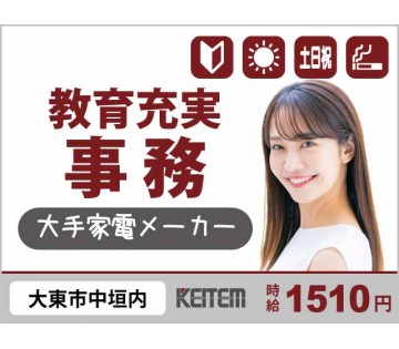 【20代,30代活躍中】20~30代の若手活躍中!事務・データ入力:少しゆっくり9時出勤/時給1510円のデスクワーク/土日祝休み/未経験OK 月収24.5万円