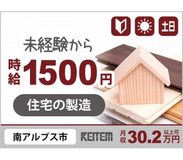 【住宅部材の製造】日勤のみ/未経験でも高時給1500円/残業多め/土日休み/月収30.2万円
