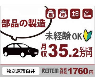 【車部品の機械加工・検査】未経験から実質時給1760円/深夜手当あり/土日休み/入社祝い金あり/月収35.2万円