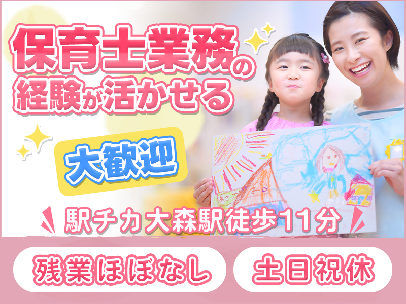 保育士のサポート☆大森駅徒歩11分!土日祝休み♪残業ほぼナシ☆月収26万円可!資格を生かして高収入
