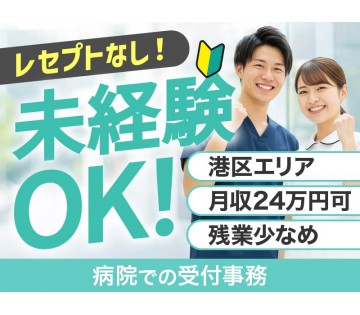 【20代,30代活躍中】月収24万円可!病院での受付事務◎レセプトなし!残業少なめ★格安食堂あり【履歴書不要☆オンライン面接OK】【入社キャンペーン実施中!】