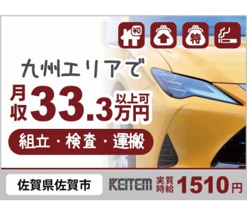 【車のヘッドライトの組立・検査・運搬】九州エリアで寮費無料の1R完備/未経験OKのカンタン作業/土日休み/研修あり/月収33.3万円