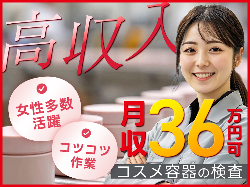 【女性多数活躍☆高収入!】空調完備の快適環境でコスメ容器の検査♪【履歴書不要☆オンライン面接OK】【入社キャンペーン実施中!】