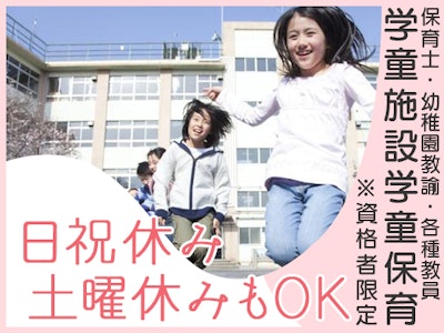 資格×子育て経験を活かす☆《学童支援員》子ども達の笑顔がパワーに♪要資格☆未経験OK\しゅふ活躍中/安心のサポート♪Wワーク・扶養内・日払いOK!まずは登録へ!