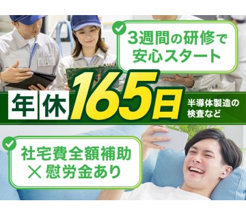 <揖保郡太子町>【新生活にぴったり!】社宅費全額補助×慰労金あり♪未経験から半導体業界へ!年休165日◎【履歴書不要☆オンライン面接OK】【入社キャンペーン実施中!】