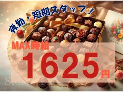 「夜勤」短期でも高収入!MAX時給1625円・お菓子の箱詰め・車通勤OK!交通費全額支給★週払いOK!