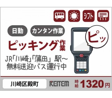 【ピッキング作業】無料送迎バス運行中/日勤/高時給1320円/女性スタッフ多数活躍中/月収29.6万円