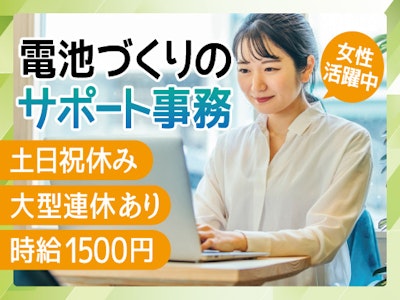 PC操作ができればOK!時給1500円◎夕方退勤&週末休み【電池試作のサポート事務】子ども手当・入学祝い金・退職金制度などライフスタイルに合わせた福利厚生充実☆