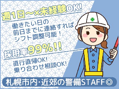 《週1~OK》未経験者大歓迎×応募者全員面接=採用率99%!【警備STAFF】交通費全額支給♪扶養内勤務OK!女性活躍中◎