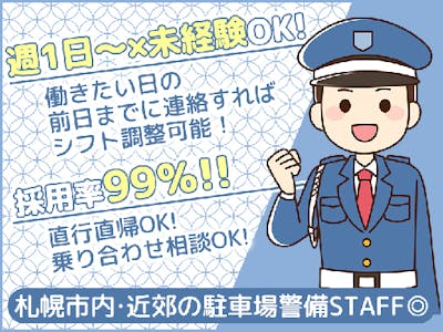《週1~OK》未経験者大歓迎×応募者全員面接=採用率99%!【駐車場警備STAFF】交通費全額支給♪扶養内勤務OK!女性活躍中◎