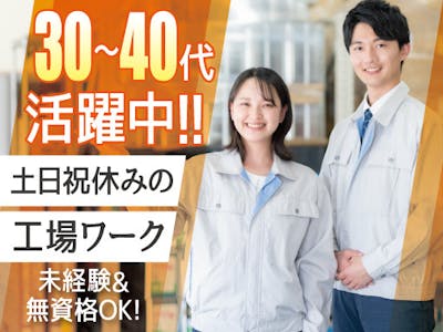 <20~40代活躍中>日勤のみ・土日祝休みで安定収入&勤務!【大手企業での製造補助】子ども手当・入学祝い金・退職金制度などライフスタイルに合わせた福利厚生充実☆