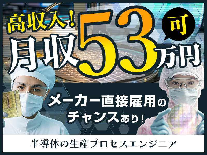 <千歳市>【高収入】月収53万円可!最先端技術に貢献♪半導体の生産プロセスエンジニア◎メーカー直接雇用のチャンスあり!【履歴書不要☆オンライン面接OK】【入社キャンペーン実施中!】